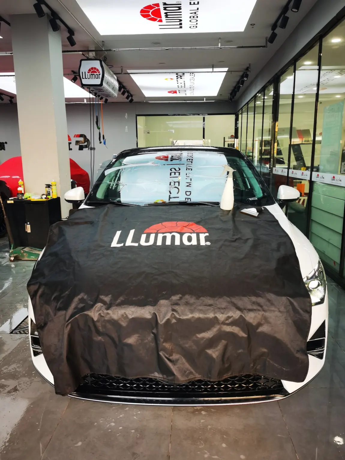 p5贴太阳膜了!双十一在龙膜旗舰店淘了畅悦太阳膜,价格还不错。赶在降温前去线下总代理处施工。店面不算特别大,服务挺热情,专人负责贴膜,洗车贴膜整理清洁,工作了4个多小时。店里贴车衣的更多,生意特别好!寻思着,车膜效果不差的话,明年补装雷达后再上车衣,谁要P5是珍珠漆呢,据说补一个面要900元呢!对了,还有天窗冰甲,也是可以安排的!p5这个大玩具真烧钱!
